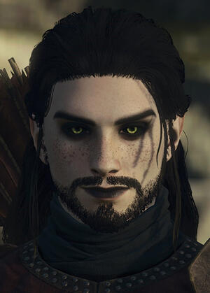 Ingram (he/it) is my player character in Baldur's Gate III. He is based on my persona but is its own character. He is a draconic sorcerer tiefling. He is the "Dark Urge", meaning he is the offspring of Bhaal, the god of murder. He has pale, greyish skin and long black hair. His green eyes with black sclera glow in the dark. He has black horns, pointed ears, sharp nails and a tail. He has ridges and green scales all over his body. He often wears black eyeliner, eyeshadow and black lipstick.